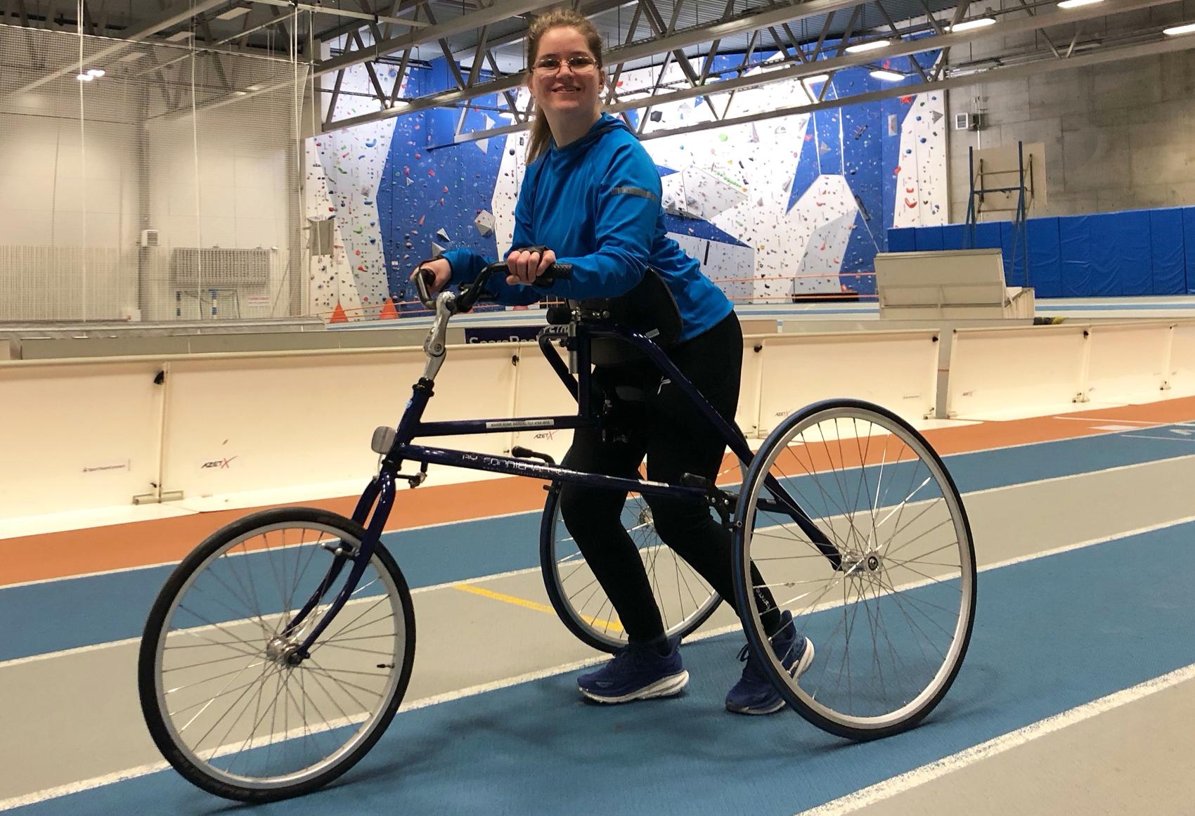 – Jeg var den eneste på banen i en slik Frame Running-sykkel, og publikum reiste seg og applauderte. Det var en fantastisk følelse som inspirerte meg til å fortsette. Dermed ble det idrettslinja på Steinkjer, sier hun.